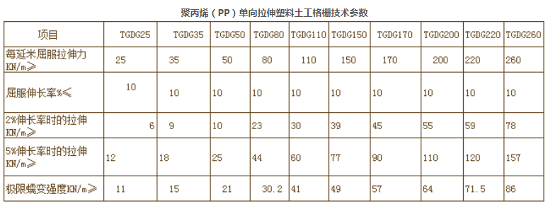 聚乙烯(PE)单向拉伸塑料土工格栅技术参数