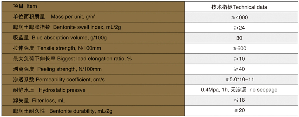 与压实粘土衬垫相比,具有体积小,重量轻,柔性好,抗剪强度高,施工方便,适应不均匀沉降等特点。 ■ 产品用途 主要应用于人工湖泊水景、垃圾填埋场、地下车库、楼顶花园、水池、油库及化学品堆场等防渗漏等。